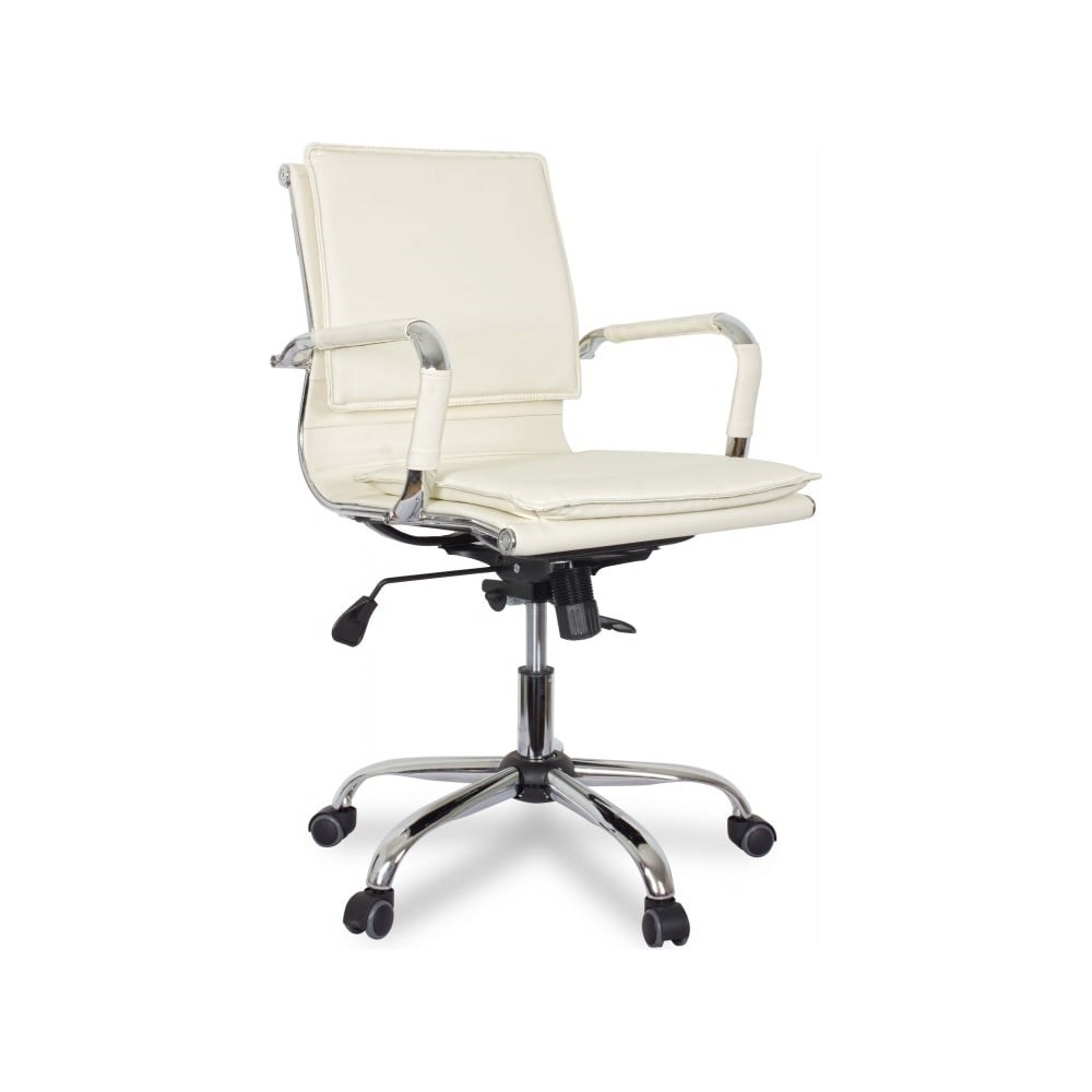 Механизм качания с регулировкой под вес и фиксацией в любом положении. Регулировка высоты (газлифт). Крестовина металлическая хромированная 64 см. Подлокотники хромированные с накладками. Материал обивки: экокожа. Цвет: Бежевый. Ограничение по весу: 120 кг. Колеса прорезиненные, подходят для твердых поверхностей.