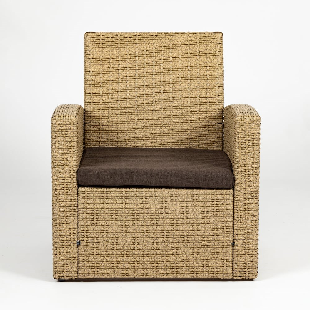 Кресло Divan24 Сицилия в бежевом цвете представляет собой удобное и практичное решение для интерьера или открытого пространства. Изготовленное из искусственного ротанга, оно отличается прочностью и долговечностью, выдерживая нагрузку до 150 кг. Влагозащитное покрытие позволяет использовать кресло на улице, не опасаясь за его состояние при неблагоприятных погодных условиях. В комплект входит подушка из ткани, также выполненная в бежевом цвете, что обеспечивает дополнительный комфорт и гармонию в дизайне. Подлокотники добавляют удобства при использовании, а компактные размеры 780x670x580 мм и легкий вес в 4 кг делают кресло мобильным и простым в перемещении.