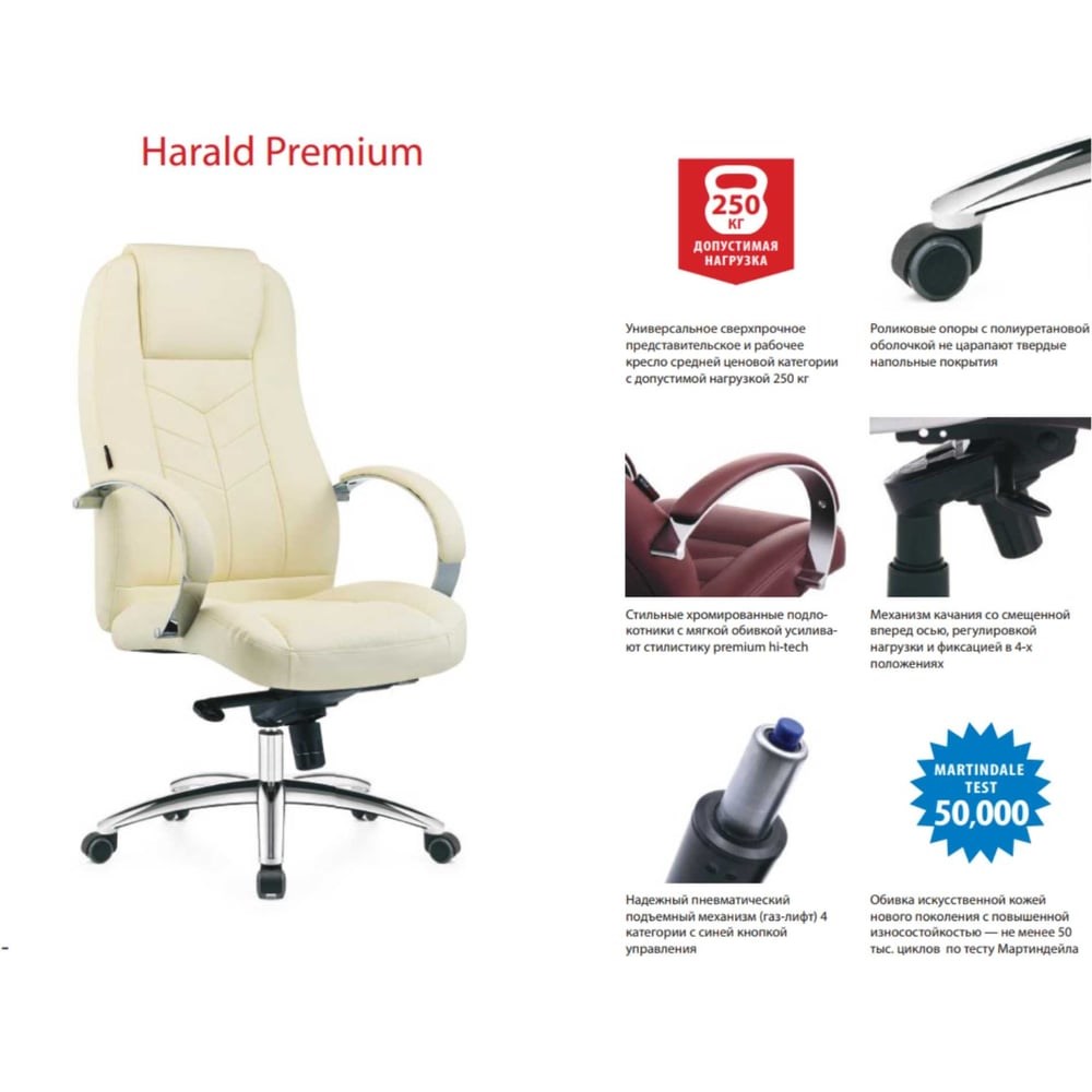 Кресло Хорошие кресла Harald 2320Н biege подходит для использования в офисе или доме. Обивка сиденья выполнена из экокожи, поэтому устойчиво к истиранию. За счет роликовых опор кресло легко транспортируется. Оснащено газлифтом 4-го класса, благодаря чему регулируется по высоте.