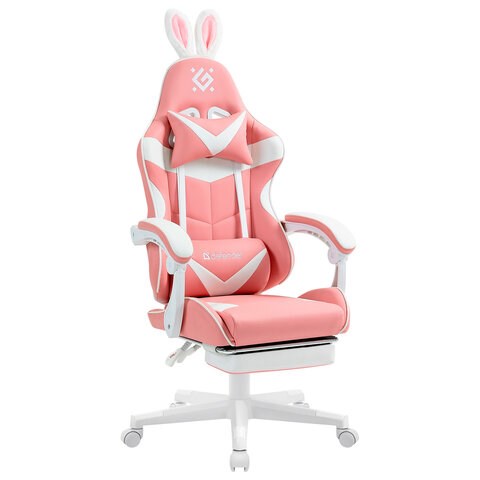 Кресло компьютерное DEFENDER "Irifi", 2 подушки, подставка для ног, экокожа, розовое/белое, 64042