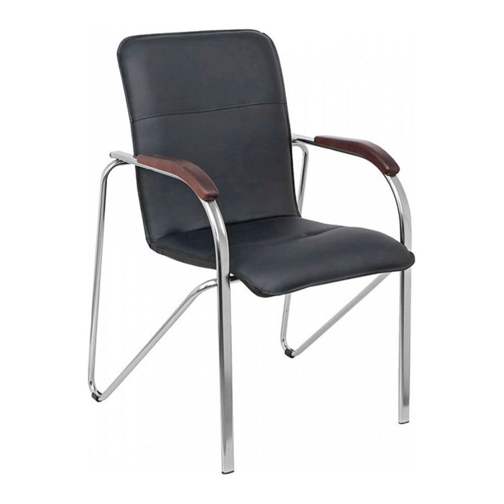 Габариты (ш*г*в): 600*600*850 мм Глубина сиденья 450 мм (+/- 10 мм) Ширина сиденья 450 мм (+/- 10 мм) Высота спинки 450 мм (+/- 10 мм) Ширина спинки 450 мм (+/- 10 мм) Материал обивки: экокожа Pegasso Black (черный) 35 000 циклов на истирание, состав 65% PU, 30% PES, 5% CO, толщина лицевого слоя 0,8 мм. Материал подлокотников: деревянные со скругленными гранями, темное (Темный орех)