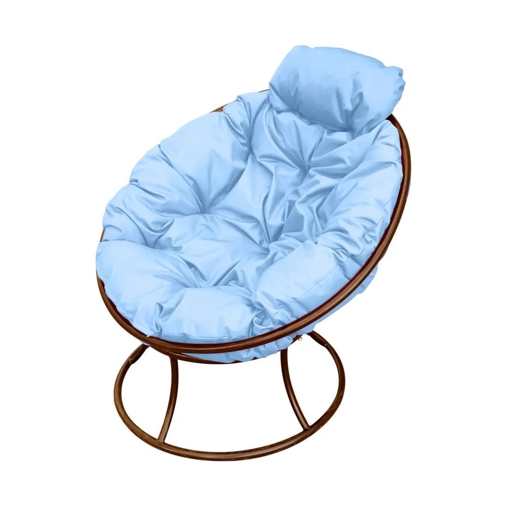 Кресло с подушкой, входящей в комплект имеет небольшой размер, что позволяет его разместить в помещении Вашей квартиры, лоджии, балкона. Ну и конечно же в нем так приятно будет отдыхать от городской суеты на свежем воздухе в загородном доме или на дачном участке. Такое кресло придаст изысканный вид любому интерьеру. Кресло выполнено из металла 20х1,2 мм( внешнее) и внутреннее оплетение 12х1,2 мм. В комплект входит подушка, выполненная из водоотталкивающей ткани Оксфорд 600. Кресло позиционируется как всепогодное-стальной каркас, покрытый порошковой краской, устойчив к ржавчине. Диаметр подушки - 90 см Подголовник 40х20 см.