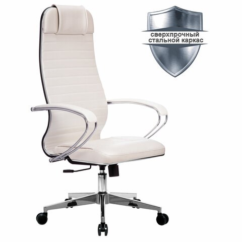 Кресло офисное МЕТТА "К-6" хром, кожа, сиденье и спинка мягкие, белое