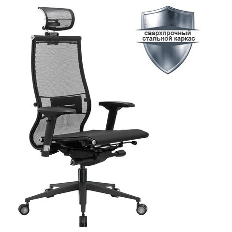 Кресло офисное МЕТТА "SAMURAI" Black Edition, сверхпрочная сетка, регулируемое, черное