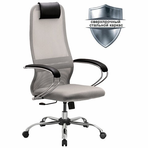 Кресло офисное МЕТТА "SU-B-8" хром, ткань-сетка, сиденье мягкое, светло-серое
