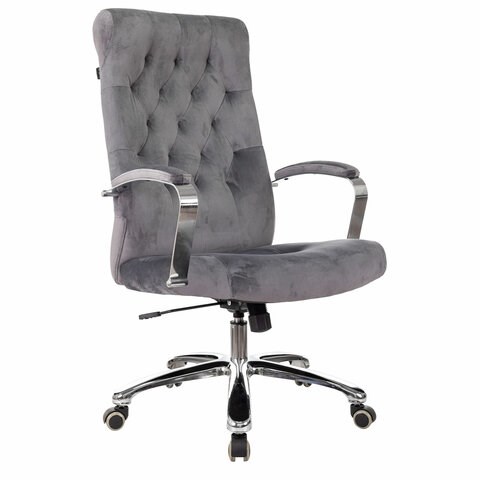 Кресло офисное T-9928SL, усиленное, НАГРУЗКА до 200 кг, хром, ткань, серое, 1985910
