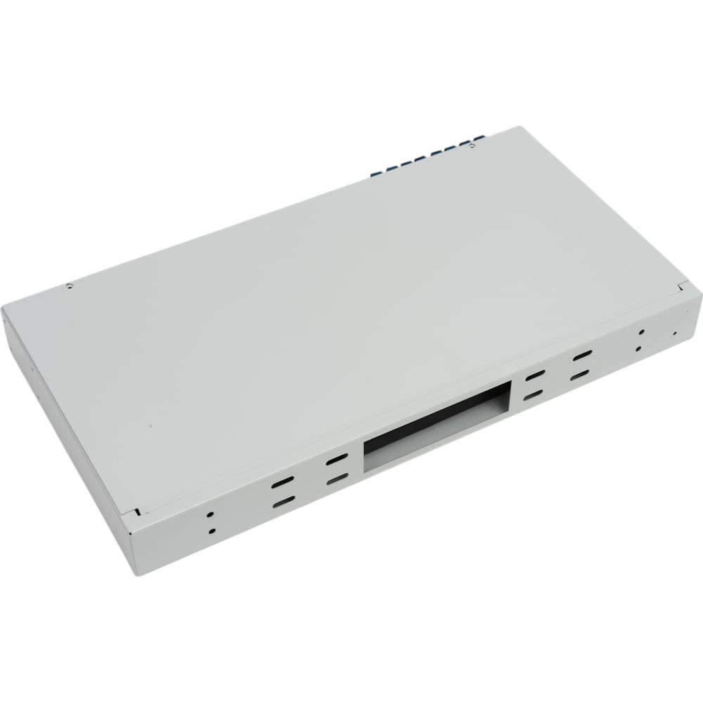 Кросс предназначен для размещения в телекоммуникационную стойку или в шкаф стандарта 19″. Соответствие установленному стандарту достигается с помощью замены крепежных кронштейнов различной ширины. Для установки гильз защиты сварных соединений оптических волокон используется пластиковая кассета КУ-01 с крышкой. Фиксация кабеля железными хомутами на винтах позволяет хорошо закрепить как распределительный кабель, так и жесткий бронированный кабель.
