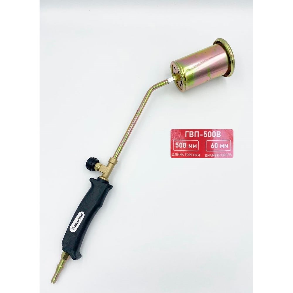 Горелка кровельная газовоздушная BlackWeld ГВП-500В D-60 мм, вентиль, латунь 150023 используется при выполнении кровельных и дорожно-строительных работ, а также для нагрева, обжига и сушки кирпичной кладки, литейных форм, сжигания травы. Регулировка подачи газа осуществляется с помощью специального вентиля. Длина 500 мм позволяет применять горелку в местах с трудным доступом.