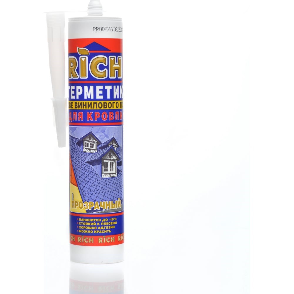 Кровельный каучуковый герметик RICH прозрачный 310 мл - специальный однокомпонентный пластический герметик на основе винилового полимера с широким спектром применения при произведении кровельных работ.