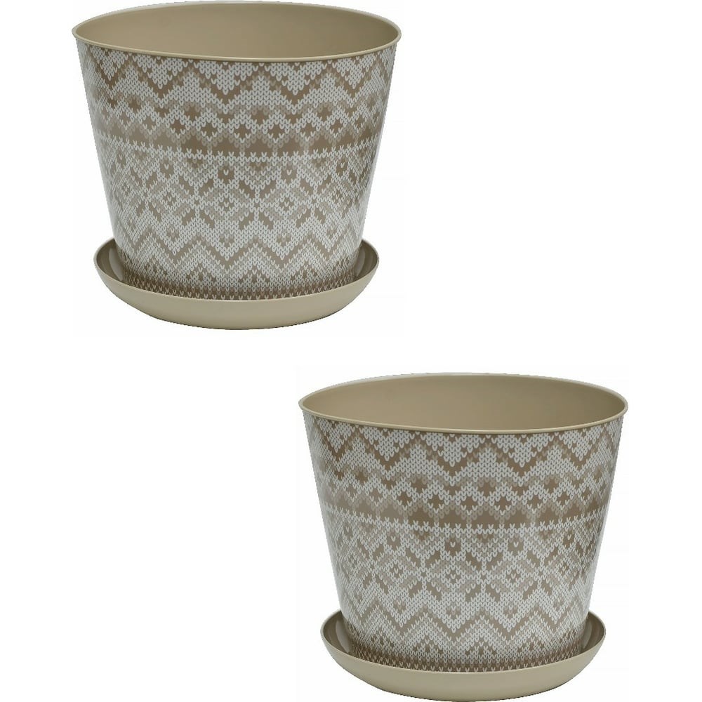 Кашпо Violet круглое, 4.3 л, декор Миссони, с поддоном, 2 шт., латте N-Kahpo-2/-38143-53 - стильное решение для любого интерьера. Цветочный горшок выполнен из экологически чистого и безопасного материала и предназначен для живых, декоративных или искусственных растений. Кашпо из пластика прекрасно подойдёт для оформления подоконника, балкона, лоджии, зимнего сада, а также любых жилых и рабочих помещений, садовых и уличных пространств. Горшок для цветов имеет поддон (подставку), благодаря чему можно не беспокоиться о проблемах перелива или высыхания растения. Возможно использовать: в качестве кашпо и в качестве цветочного горшка с поддоном.