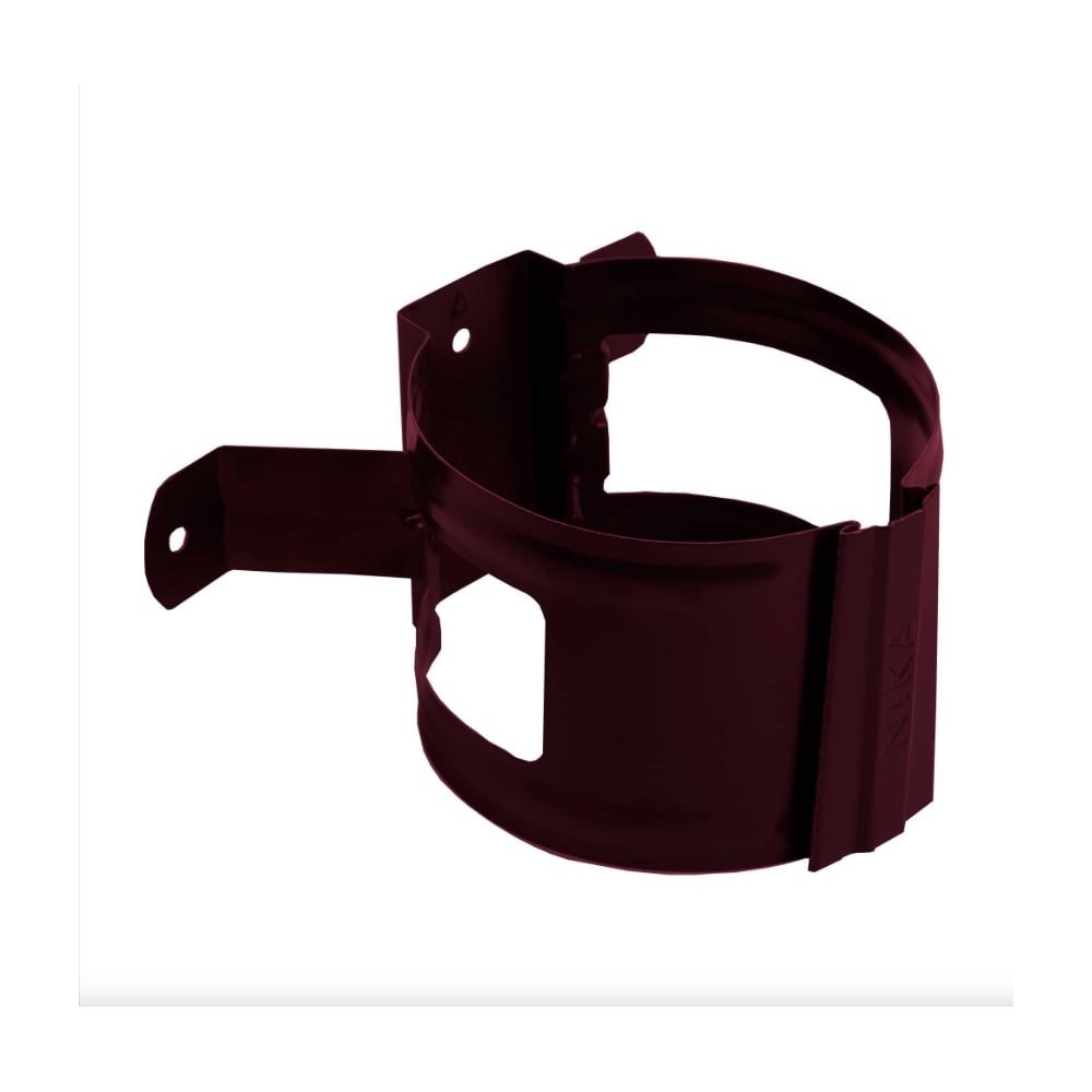 Круглый держатель трубы NIKA RAL 3005 вишневый, дерево В0000019283 - элемент водосточной системы, применяемый для крепления водосточной трубы D100 к деревянному или аналогичному фасаду. Подходит для различных поверхностей, прочный и удобный в монтаже.