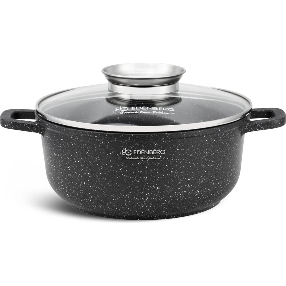 Казан 4.4 л 24 см Edenberg выполнен из прочного алюминиевого сплава с покрытием MARBLE и имеет антипригарное мраморное покрытие, крышку из жаропрочного стекла с отверстием для выхода пара и дозатором для налива масла.Жаровня с арома-ручкой на крышке Edenberg 4,4 л сотейник с антипригарным покрытием для духового шкафа и для для газовых, электрических и индукционных плит со съемными накладками на ручки. Диаметр крышки 24 см, диаметр индукционного круга 15 см, диаметр дна 21 см, высота без крышки 9 см, высота с крышкой 13,5 см, длина с ручками 33 см, литой алюминий. Сотейник - это отличный прибор, в котором можно готовить пищу для большого количества людей. Им удобно пользоваться благодаря эргономичным ручкам, что не нагреваются. Дно обеспечит равномерное распределения тепла внутри, что позволит качественно приготовить пищу. Сотейник подходит для всех видов плит. Для приготовления некоторых блюд казан просто незаменим, например для приготовления плова или тушение овощей с мясом.Кастрюля-Сотейник изготовлен из высококачественных компонентов, имеет толстые стенки, включая утолщенное многослойное дно. При применении такого казана исключено пригорание пищи, так как казан имеет внутреннее керамическое покрытие.
