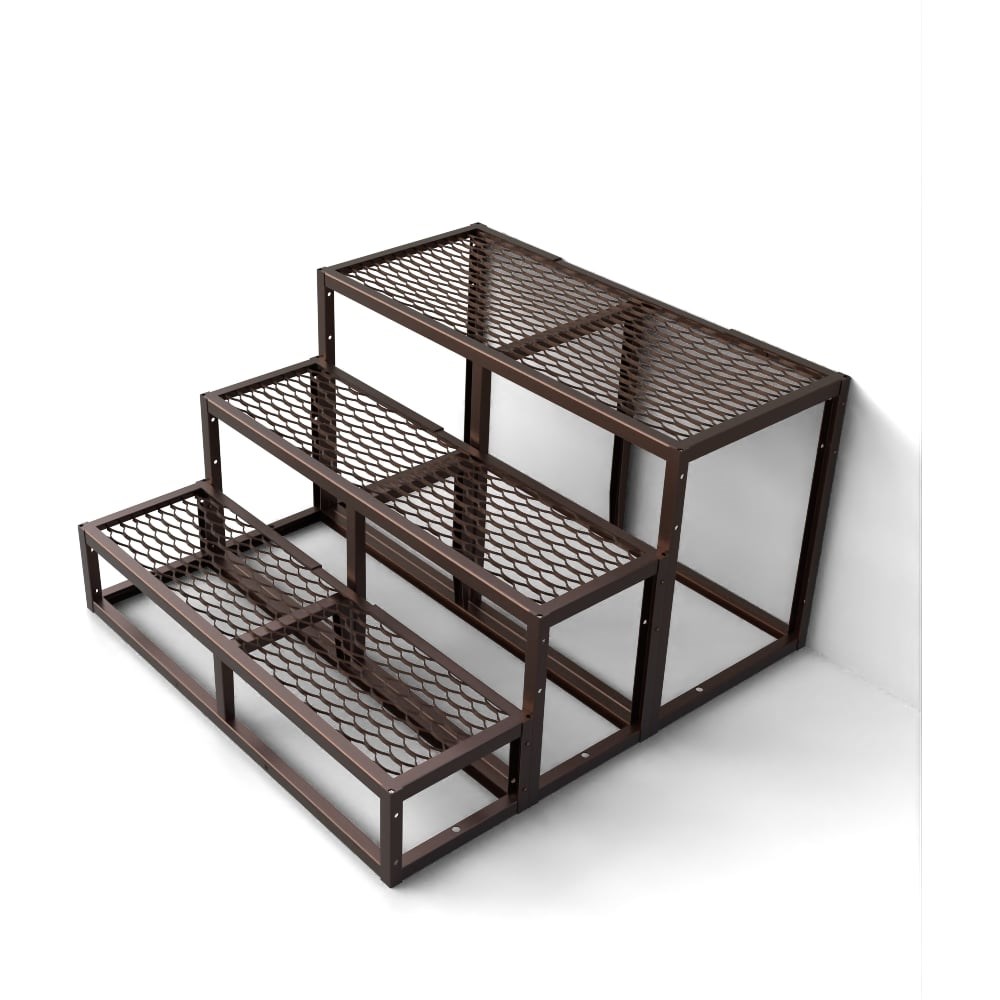 Каркас лестницы к дому на три ступени раздел «Универсал» с просечно-вытяжным листом (ПВЛ). Все каркасы лестниц и перил раздела «УНИВЕРСАЛ» совместимы для соединения друг с другом (фото 3). Другие модели лестниц, козырьков, навесов, перил Вы можете посмотреть по серии ARSENAL AVANT. Наши преимущества: - Каркас и ступени изготовлены из сложно-гнутого профиля на станках ЧПУ лазерной резки ГОСТ Р ИСО 9013-2022 и гибки металла по ГОСТ18970-84. Распределенная весовая нагрузка на ступени до 500 кг. - От прогиба ступени посредине установлено П- образное ребро жесткости. - Просечно-вытяжной лист (ПВЛ) на ступенях расположен в замкнутом металлическом контуре (эстетический внешний вид, исключает зацепы за острые края). - Сварочные швы только изнутри ступеней (эстетический внешний вид, предотвращает коррозию на сварочных швах). - Отверстия - в наличии отверстия для крепления к стене, полу, перил, придверной решетки для обуви. Возможность соединения дополнительных ступеней между собой по ширине и глубине (фото 4). - Окраска - электростатическая порошковая краска цвет по RAL 8017 (темно-коричневый, шоколад) шагрень. - Быстрая сборка, малогабаритная упаковка (помещается в легковой автотранспорт).