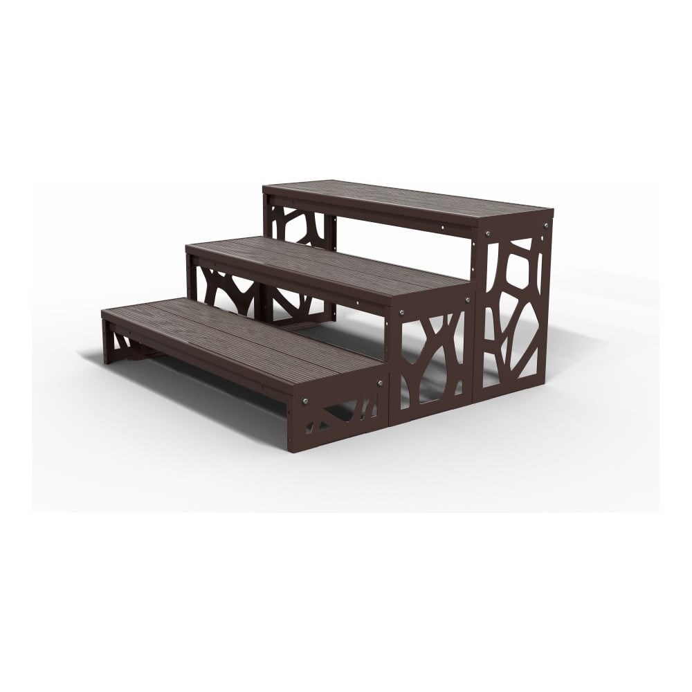 Лестница с тремя ступенями для крыльца в стиле «Лофт». Прочная конструкция с покрытием из влагостойкой террасной доски ДПК, обеспечивающей антискользящий эффект и устойчивость к воздействию окружающей среды. Лестница оснащена замкнутым металлическим контуром, защищающим покрытие и предотвращающим сколы. Каркас обработан порошковой окраской RAL 8017, что гарантирует долговечность и защиту от коррозии. Возможность наращивания ступеней по длине и ширине. Преимущества: Влагостойкая террасная доска ДПК с антискользящим покрытием Замкнутый металлический контур предотвращает повреждения покрытия Порошковая окраска RAL 8017 для защиты от коррозии Скрытые крепежи для удобства ухода и эстетики Возможность расширения по длине и ширине