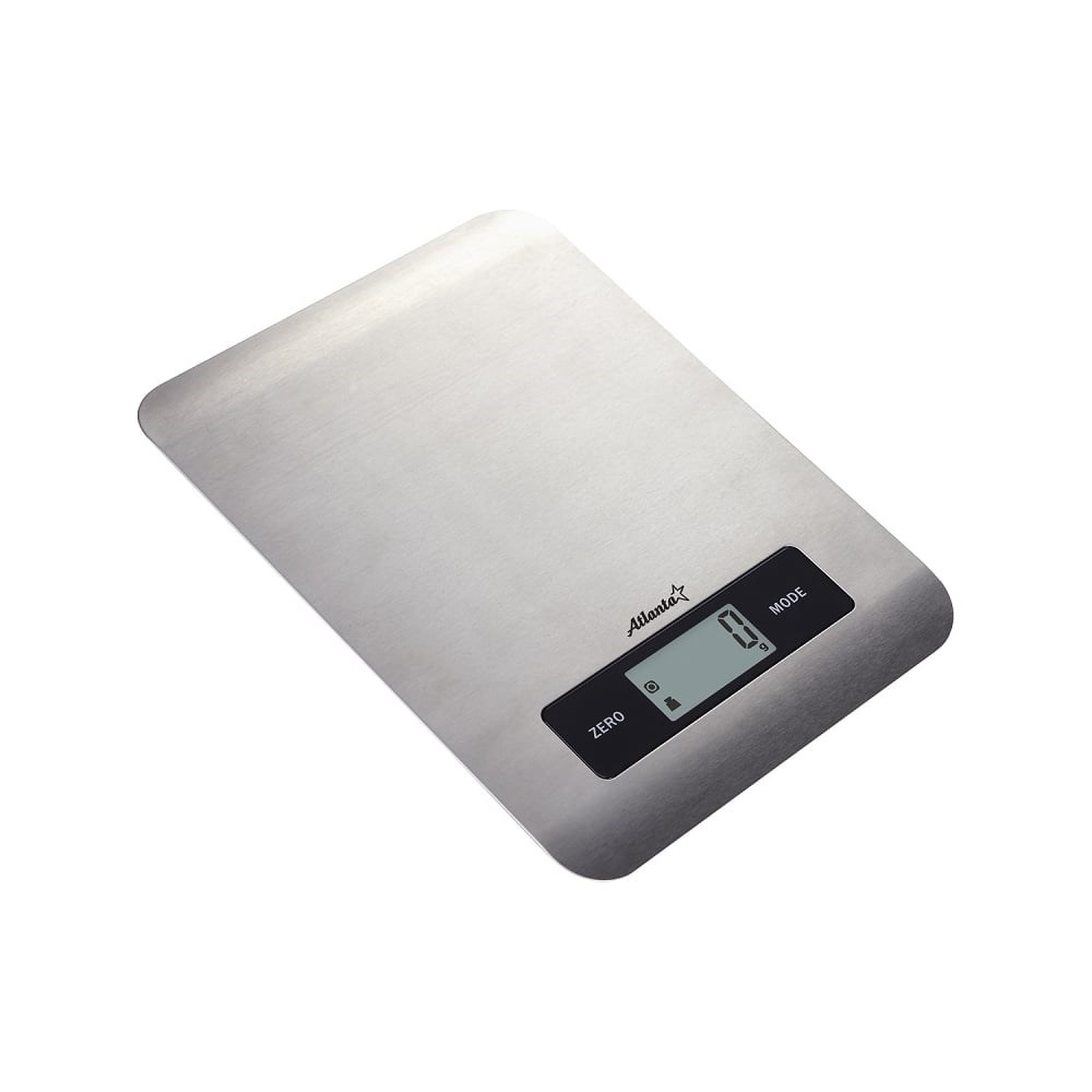 Кухонные электронные весы Atlanta ATH-6196 silver: стальная рабочая поверхность, максимальный вес 5 кг с шагом 1 г, LED-дисплей. Полностью электронный принцип взвешивания на высокоточных сенсорах гарантирует точность измерения веса, а благодаря отсутствию механических механизмов, весы прослужат многие годы.