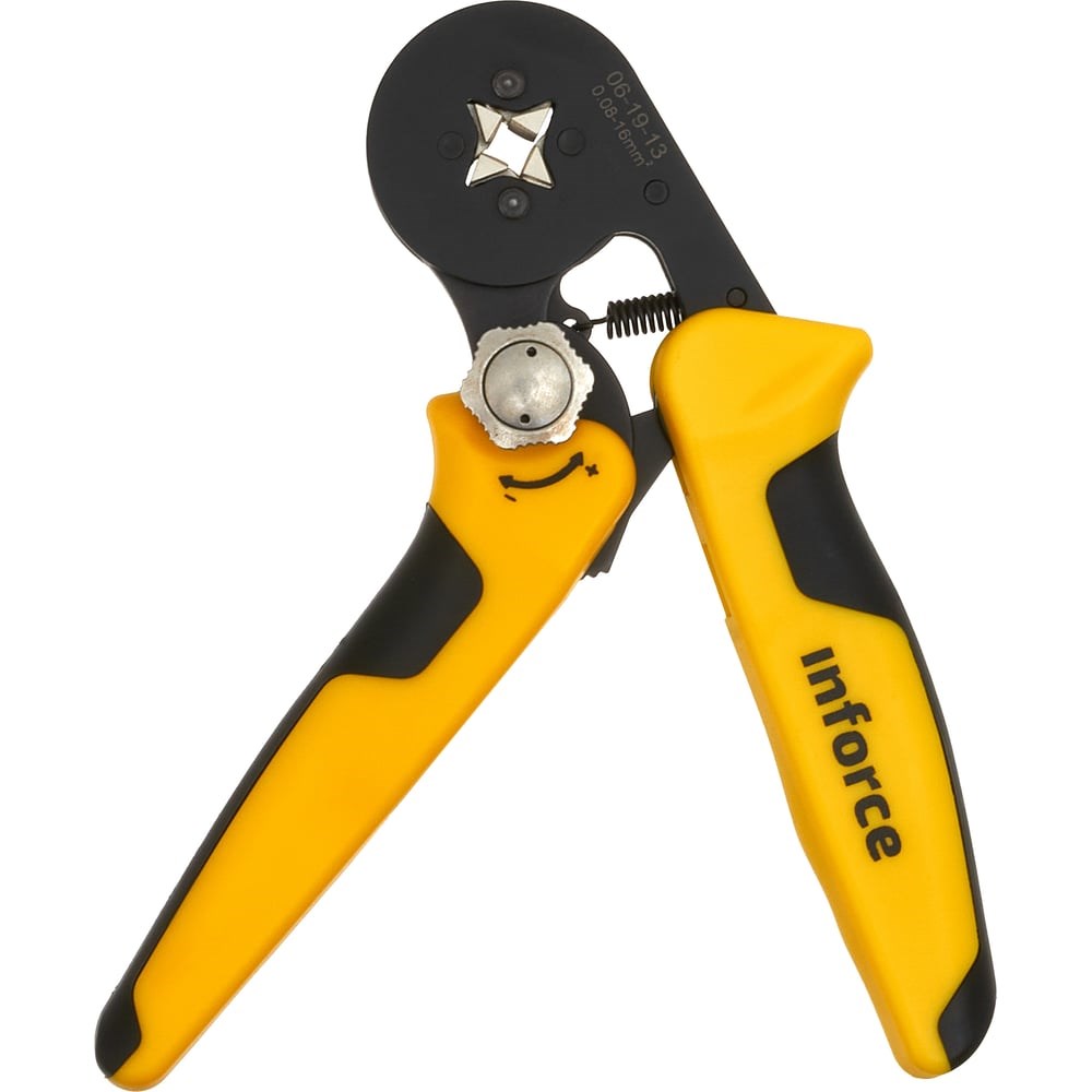 Квадратные пресс клещи Inforce с регулировочным винтом 0.08-16 мм2 06-19-13 имеют небольшие размеры, что упрощает работу в стесненных условиях. Обжимная матрица позволяет работать с 18 типоразмерами втулочных наконечников. В зависимости от выбранного сечения матрицу можно поворачивать по часовой или против часовой стрелки. Двухкомпонентные рукоятки не скользят в ладонях – это позволяет значительно повысить усилие, необходимое для качественного обжима наконечников. Регулятор прижимных усилий позволяет менять степень сжатия матриц либо в сторону увеличения, либо в сторону уменьшения. Храповой механизм Inforce с регулировочным винтом 0.08-16 мм2 06-19-13 обеспечивает качественный обжим Одна саморегулирующаяся матрица на все типоразмеры диапазона Большая номенклатура используемых клемм Работа с проводами сечением 0,08 – 16 мм²