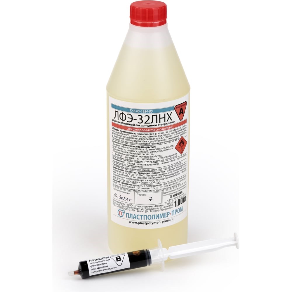 Лак ЛФЭ-32ЛНХ – лак фторопласто-эпоксидный двухкомпонентный, отверждаемый при комнатной температуре. Данный лак используется для изготовления антифрикционных, антиадгезионных, стойких к окислителям и атмосферостойких покрытий, пленок, лакотканей и изделий, выдерживающих длительное воздействие агрессивных сред и перепад температуры без существенного изменения свойств. Отличается повышенной адгезией при низких температурах. Температура эксплуатации лака от -60 до +180. Покрытия из данных лаков сочетают ценные технические свойства фторопластов: высокая химическая, атмосферо- и тропикостойкость; эластичность, нагрево- и морозостойкость; хорошие диэлектрические показатели, антифрикционные свойства; высокая адгезия к металлам, стеклопластикам, пластмассам, дереву, резине, стеклу и другим материалам.