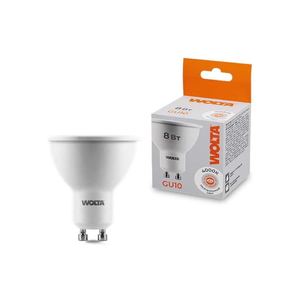 Wolta Светодиодная лампа Софит 8Вт, 4000K Дневной белый свет , Spot , GU10 , PAR16 , 25SPAR16-230-8GU10 повторяет форму и размеры стандартных галогенных ламп типа «Софит», формат Spot. Идеально подходит к любому светильнику, в котором используются данный тип ламп. Надёжная защита при скачках напряжения - при возникновении скачков напряжения специальная конструкция электронного драйвера сглаживает данные пульсации. Низкая температура нагрева - позволяет использовать лампы в декоративных светильниках всех типов (кроме светильников в местах с ограниченным движением воздуха). Продукция прошла многоступенчатый контроль качества - тестирование всех деталей электронного драйвера, а также тестирование светодиодов.Частота, 50 ГцУгол рассеяния, 120°Диапазон рабочих температур, -20..+40°СМатериал корпуса - Пластик-алюминийСлужит до 25 раз дольше по сравнению с лампами накаливания. Повышенная светоотдача за счет использования высококачественных светодиодов позволяет получить больший световой поток. Наличие сертификата EAC гарантирует Вам безопасность для здоровья при использовании лампы на протяжении всего срока службы. Светодиодная лампа не содержит ртуть и любые иные вещества, вредные для здоровья человека и окружающей среды.Компания WOLTA предоставляет гарантию на лампы - 1 год и сервис по замене товара. Мы гарантируем тройной контроль качества прожектора в собственной лаборатории.