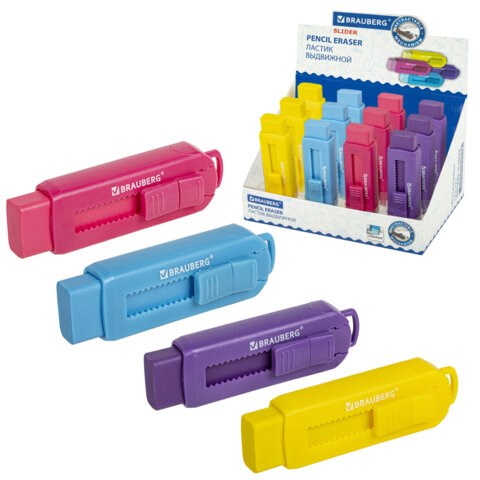Ластик выдвижной BRAUBERG "Slider", 88х26х21 мм, яркие цвета корпуса ассорти, 271985
