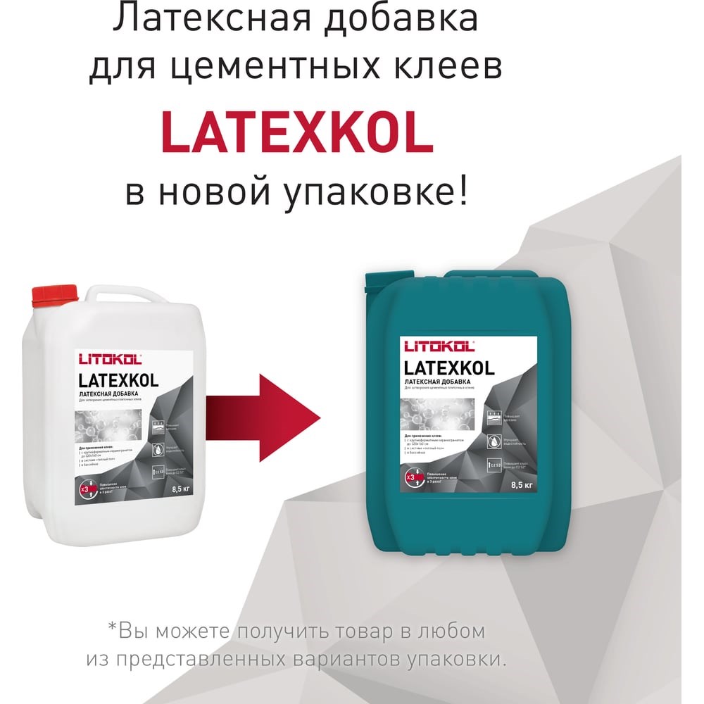 Латексная добавка LATEXKOL, предназначена для придания эластичности цементным клеевым смесям, повышения их стой-кости к трещинообразованию при деформациях и повышения адгезии к основаниям.LATEXKOL рекомендуется для использования в качестве добавки к следующим клеевым смеcям: LITOKOL X11 EVO, LITOPLUS K55, LITOSTONE K98, LITOSTONE K99.При использовании латексной добавки LATEXKOL, с цементными клеевыми смесями:повышается эластичность и деформационная способность клеевого слоя;повышается адгезия (прочность сцепления) клея к основанию и плитке;повышается водостойкость клеевого слоя;повышается морозостойкость клеевого слоя;на водной основе, не содержит растворителей.