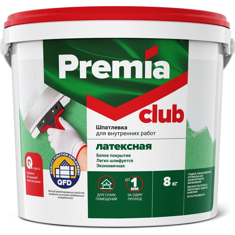 Латексная шпаклевка Premia Club для внутренних работ, ведро 8 кг О03940