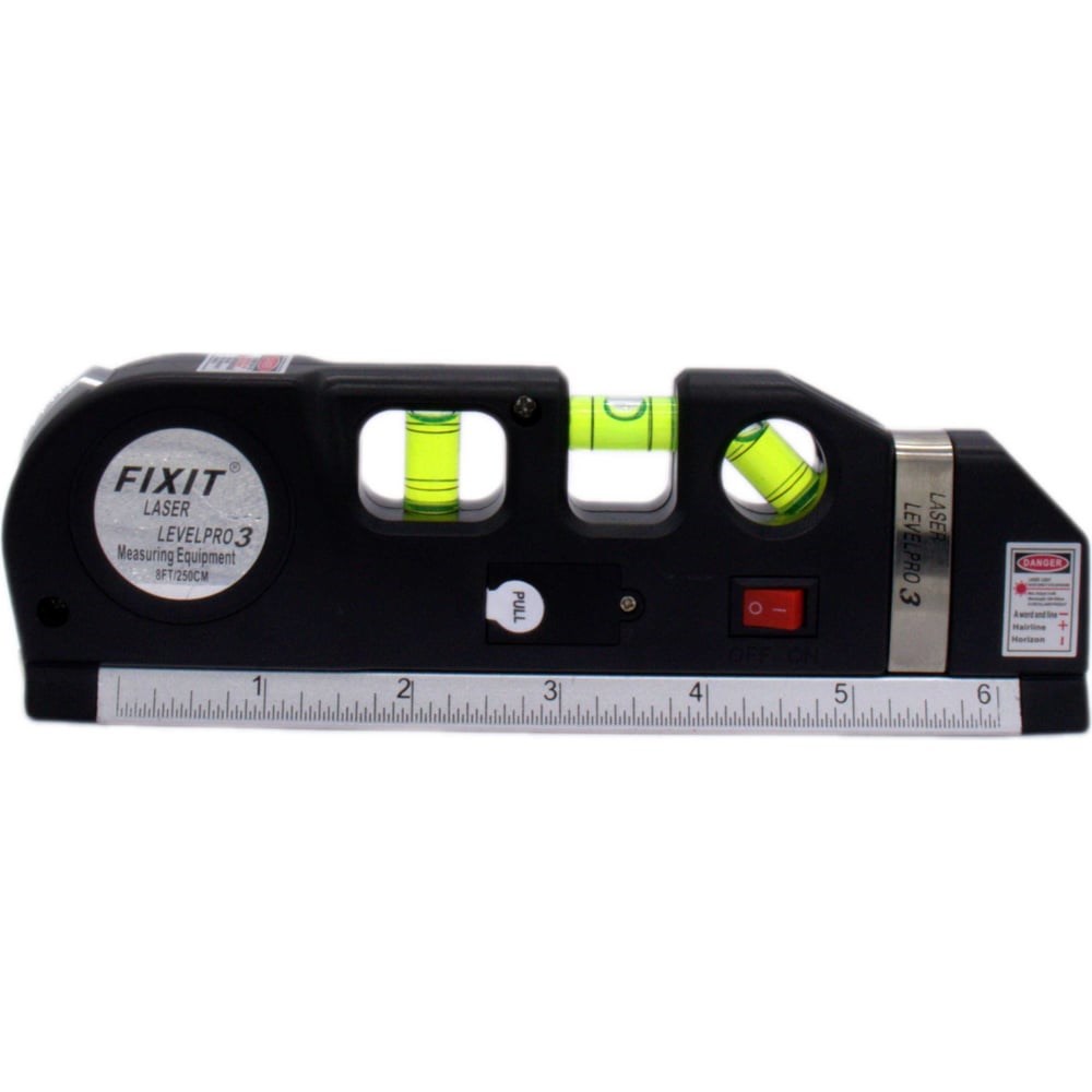Лазерный уровень TOOLAS со встроенной рулеткой 2.5 м. Лазерный уровень состоит из 2.5 метровой рулетки с автостопом, которая встроена в корпус уровня, позволяющего справиться с задачей на расстоянии. С принципом действия уровня вы разберетесь очень быстро. За включение прибора отвечает красная кнопка. Компактный прибор пригодится в каждой квартире, а не только людям, которые систематически сталкиваются с ремонтом и строительством. Например, с помощью лазерного уровня можно подвесить картину или полку, установить карниз и так далее. В комплекте есть батарейки.