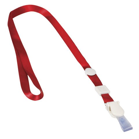 Лента для бейджей, 45 см, съемный пластиковый клип-замок с петелькой, КРАСНАЯ, BRAUBERG, 235730