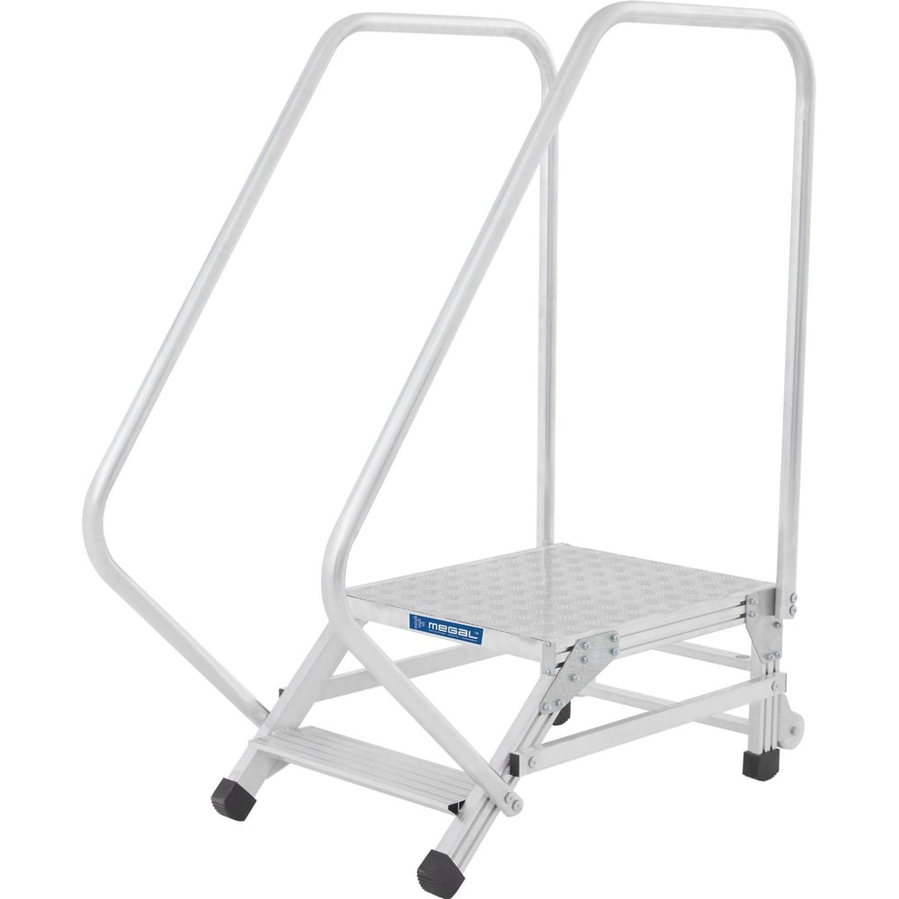 Лестница-подмости с двумя поручнями MEGAL ЛП-0.4 051801 предназначена для обеспечения комфортных условий труда при выполнении монтажных, сервисных и других работ на небольших высотах. Сверху подмости укомплектованы двумя поручнями, снизу – резиновыми противоскользящими башмаками. Для удобства перемещения по рабочей территории модель оснащена комплектом колес. Широкие ступени глубиной 16 см из специального рифленого профиля обеспечивают безопасный подъем и комфорт в работе. Верхняя площадка имеет размер 60х70 см. Наклонный лестничный маршрут расположен под углом 45 градусов. Обратите внимание! Количество ступеней не соответствует представленному на фото.