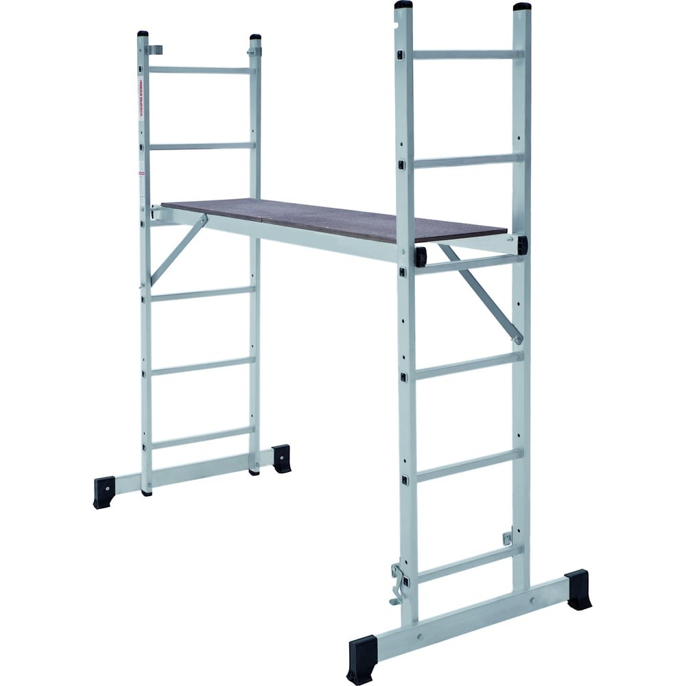 Лестница-помост Новая Высота nv 1415, 2x6 перекладин, помост 1,379x0,34 м, рабочая высота 2,8 м 415206 - легкая и прочная, «3 в 1»: приставная лестница, стремянка, строительные подмости. Компактно складывается для хранения и транспортировки.