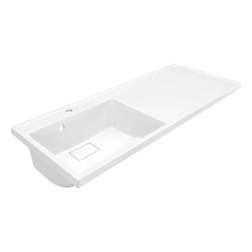 Раковина Paola Magenta 120 левая 1200 L из литьевого мрамора с отверстием под смеситель. Материал состоит из натуральной мраморной крошки и полимерных связующих смол, готовое изделие дополнительно защищается специальным покрытием - гелькоутом, препятствующим размножению вредоносных бактерий и не впитывающим обычные бытовые загрязнения. Раковина с таким покрытием не требует особого ухода, для очистки поверхности достаточно использовать жидкие неабразивные моющие средства. Сочетание мраморной крошки и акриловых смол, а также используемое защитное покрытие, позволяет сделать материал в 8 раз прочнее натурального мрамора.