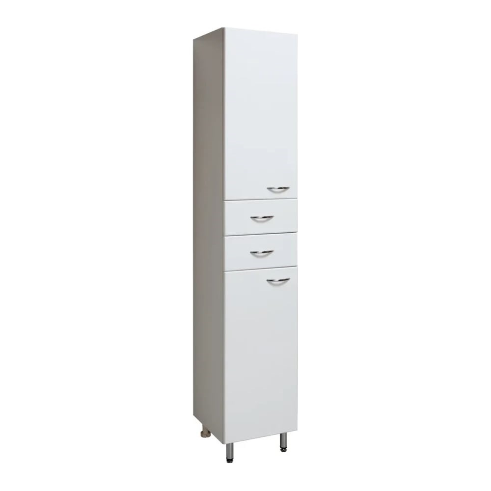 Пенал RUNO 30 левый 00000000123 - функциональное решение для недорогого и современного оснащения ванной комнаты. Шкаф выполнен в белом цвете, идеально впишется в любой интерьер ванной комнаты. Изделие имеет две распашные дверцы, в нижнем и верхнем отделениях по одной встроенной полке и два выдвижных ящика на шариковых направляющих. В комплекте идут петли со встроенным доводчиком, 4 ручки, 2 хромированные и 2 пластиковые ножки. Мебель для ванной RUNO - красота и практичность в мелочах!