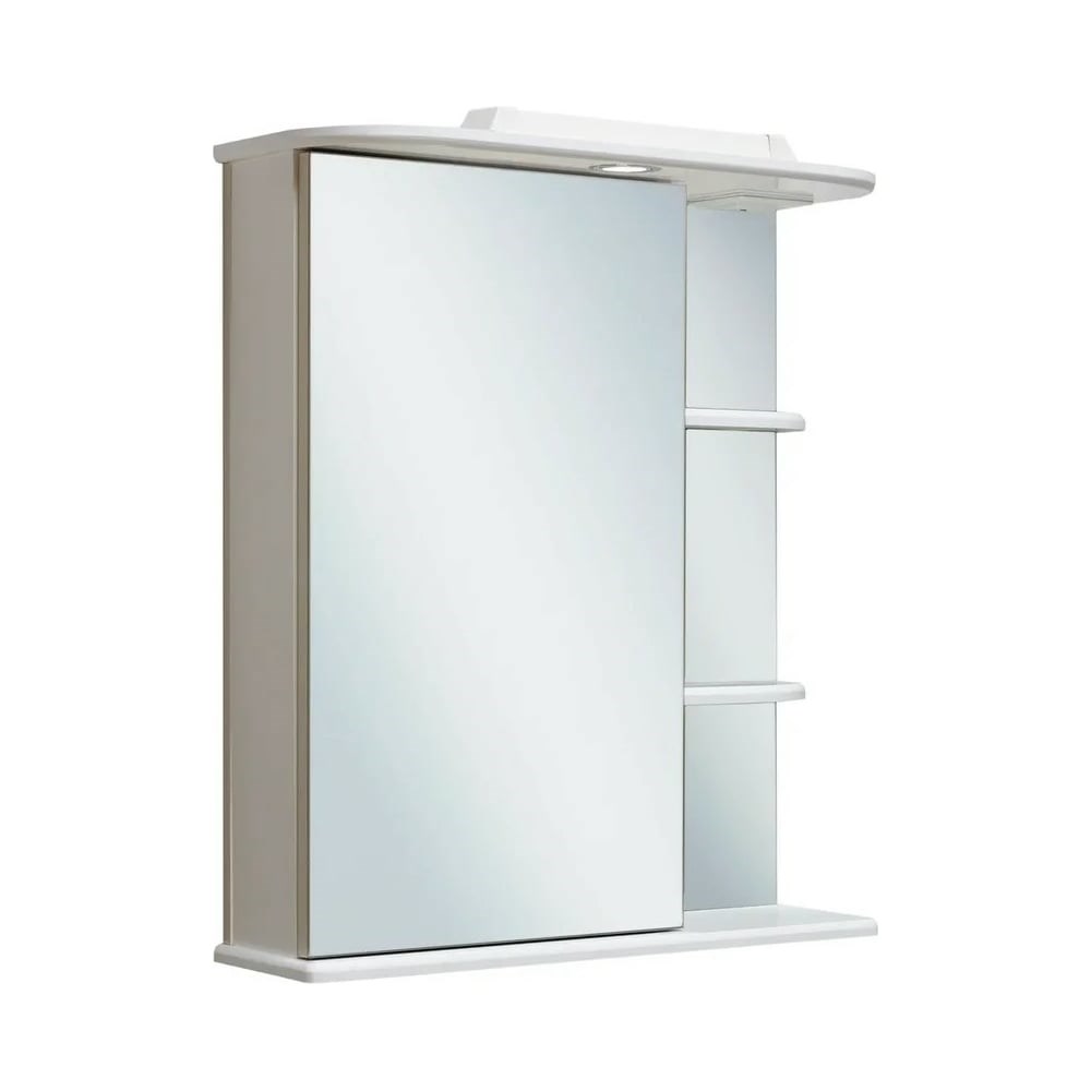 Зеркальный шкаф RUNO Магнолия 60 левый 00000000030 имеет одну распашную дверцу с зеркальным фасадом слева, две открытые полки справа. Шкаф для ванной оборудован одним врезным светодиодным светильником 220 В, розеткой с выключателем, петлями со встроенным доводчиком.