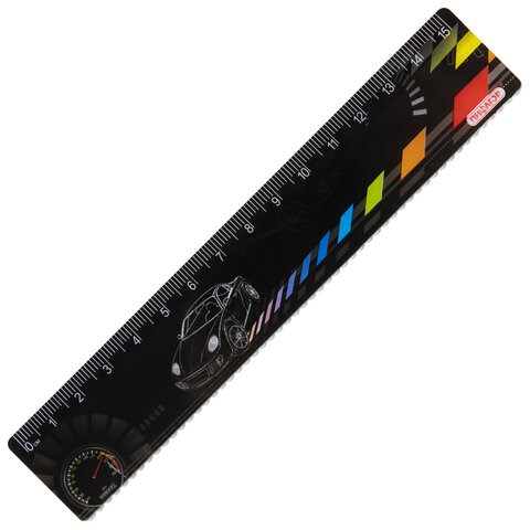 Линейка пластиковая 15 см, ПИФАГОР "Авто", цветная печать, с волнистым краем, европодвес, 210634