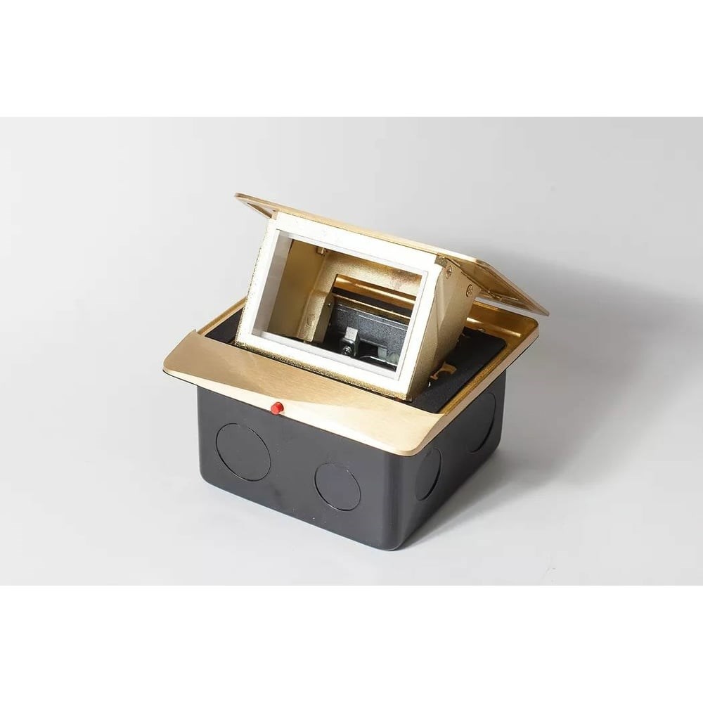 Лючок под розетки – это изделие для компактного размещения электрических и информационных розеток.Лючок встраиваемый в настольное и в напольное покрытиеДополнительные характеристики люка на 1,5 поста SPL 45x45, латунь, с металлической коробкой, IP44 300001:Верхняя панель: 120х120х8.5 мм;Металлическая коробка: 100х100х55 мм;Возможен монтаж, как в любые типы полов, так и непосредственно в рабочие столы.Количество вводов: 12 шт.