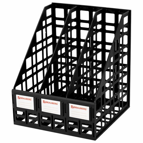 Лоток вертикальный для бумаг BRAUBERG "ULTRA", 240 мм, 3 отделения, сетчатый, сборный, черный, 238249