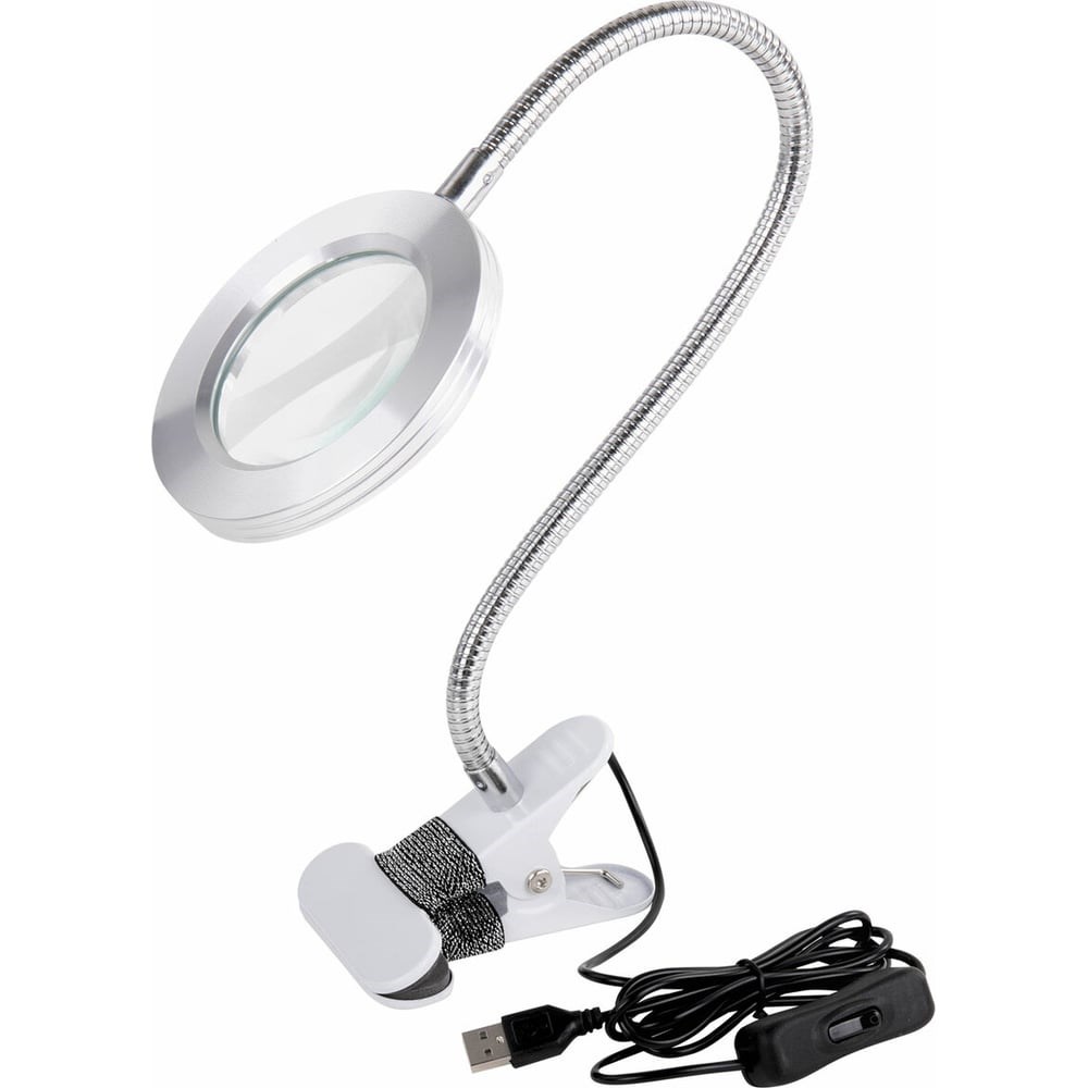 Настольная лупа BRAUBERG с подсветкой предназначена для чтения, просмотра карт, мелких рисунков, шкал, схем, в том числе при отсутствии света или слабом освещении. Имеет усовершенствованную технологию освещения, комфортное увеличение. Корпус изделия изготовлен из металла. Крепится к поверхности при помощи прищепки. Есть гибкая ножка, несколько углов вращения, регулируемый угол наклона. Увеличение линзы 3х, диаметр 75 мм. Светодиодная подсветка расположена по всему диаметру линзы. Подключается устройство к источнику питания при помощи USB кабеля.