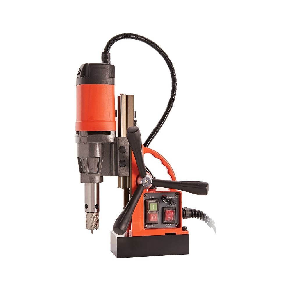Магнитный сверлильный станок SU-30 - это легкая и надежная модель с дополнительной возможностью перемещения шпинделя по направляющей от -23 до +195 мм (ход пиноли 218 мм с отрицательным выносом 23 мм)! Рабочий ход составляет 100 мм. Позволяет сверлить металл корончатыми сверлами диаметром до 30 мм с хвостовиком WELDON 19 и спиральными сверлами с цилиндрическим хвостовиком (кулачковый патрон в комплекте).Встроенная система охлаждения - поступление СОЖ изнутри в место сверления и эффективное охлаждение корончатого сверла и металла. Во время сверления, штифтом открывается внутренний клапан для поступления СОЖ. Макс. глубина, на которую утапливается внутрь штифт во время сверления составляет 35 мм, после чего можно извлечь штифт и продолжить сверление до глубины 110 мм.Вертикальное положение шпинделя при необходимости можно поднять вверх до 195 мм от основания магнита для установки дополнительной оснастки или опустить ниже магнитного основания на 23 мм, за счет дополнительного крепления привода на направляющей.Рекомендуем данный станок к использованию для высотных работ, на небольших производствах, в специализированных цехах металлообработки.Миниатюрный магнитный станок, укомплектованный для стандартных задач по сверлению.Показывает высокую производительность при низкой стоимости.С помощью плавной регулировки оборотов можно подобрать оптимальные режимы сверления.Двойной ласточкин хвост позволяет использовать удлиненную оснастку.