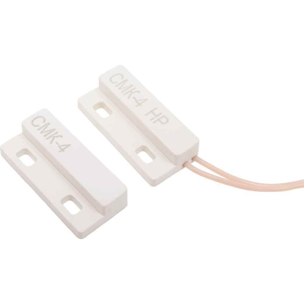 Магнитоконтактный сигнализатор Магнито-контакт СМК-4 НР 00-00007123 предназначен для применения в системах автоматики различных устройств, в технике бытового, коммерческого, медицинского, научного и промышленного назначений и выдачи сигнала, путем размыкания или переключения сухого контакта геркона; а так же в системах охранной или охранно-пожарной сигнализаций с целью блокировки элементов конструкций из магнитопроводных и не магнитопроводных материалов. Контакты гарантированно замыкаются при расстоянии между контактом и магнитом 11 мм и менее и размыкаются на расстоянии 16 мм и более. Серия сигнализаторов СМК выполнена из современных материалов и комплектующих, что позволило значительно (на 10-15%) увеличить их надежность и долговечность. Сигнализатор состоит из блока геркона и блока магнита.