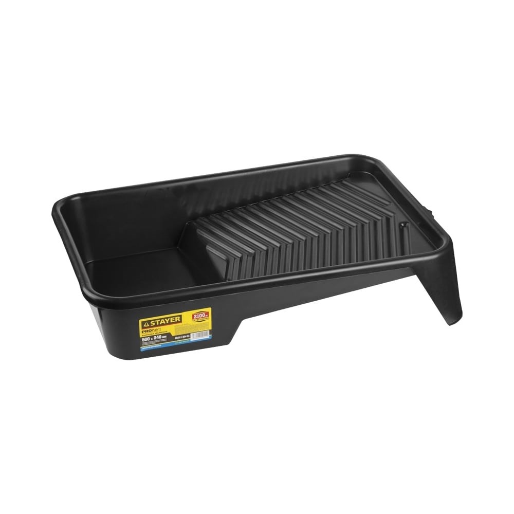 Малярная пластмассовая ванночка для валиков до 270 мм (50х34см; 2.1л) STAYER PROFI 06051-50-34 обладает самым большим в своей серии объемом (2.1 л), что уменьшает потребность добавления расходуемого материала во время проведения ремонтных работ на больших поверхностях. Конструкция приспособления рассчитана под фасадные валики шириной до 27 см. Специальная рельефная поверхность позволяет малярному инструменту захватывать больше краски за раз. Слив ЛКМ осуществляется через носик.