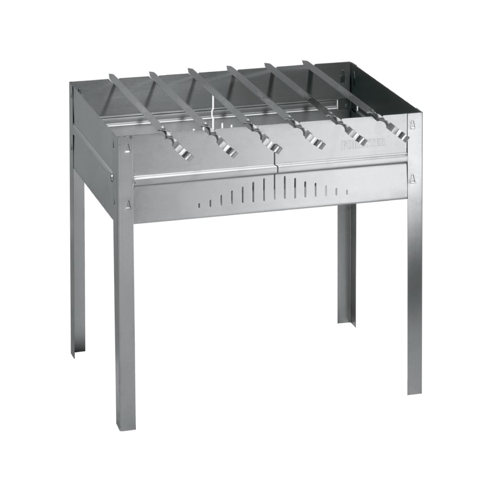 Усиленный разборный мангал классического вида. Имеет дополнительные ребра жесткости, обеспечивающие конструкции изделия максимальную прочность. Кроме этого специальные запатентованные прорези для поддува снимают напряжение металла во время эксплуатации, что также продлевает срок службы мангала. Мангал разборный с усиленным дном 6 шампуров Forester BC-779 изготовлен из жаропрочной стали 08ПС. Мангал Forester с ребрами жесткости комплектуется шестью шампурами (длина каждого - 45 см). Шампуры Forester упругие и гибкие, имеют зеркальную поверхность, устойчивы к воздействию агрессивной окружающей среды. Параметры рабочей поверхности мангала 50 х 30 см.