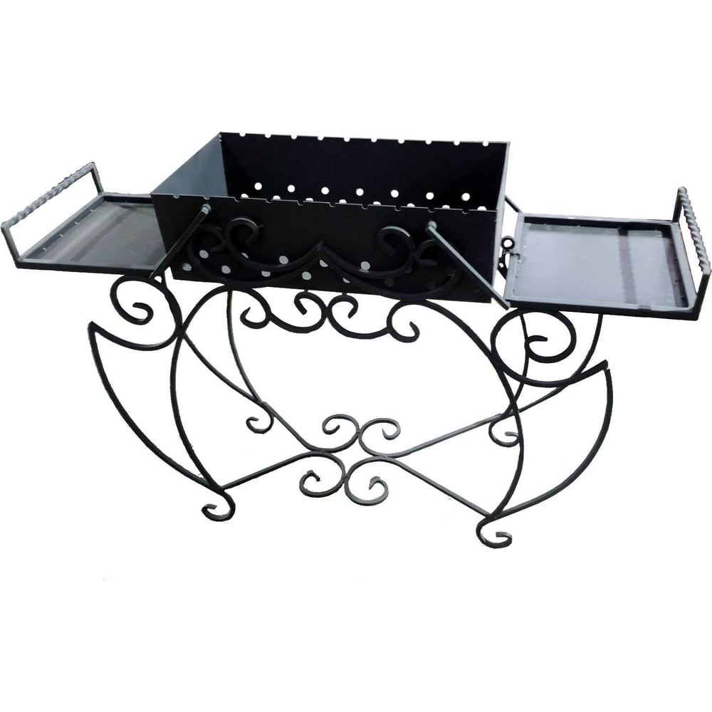 Мангал Станкоинструмент и оснастка МС-16 4811381014618 предназначен для приготовления пищи на открытом воздухе. Конструкция изделия выполнена из прочного металла, окрашенного жаростойкой краской. По бокам предусмотренны столики, что позволяет держать под рукой принадлежности для барбекю и подготовленные продукты. Отверстия на корпусе обеспечивают равномерное горение угля.