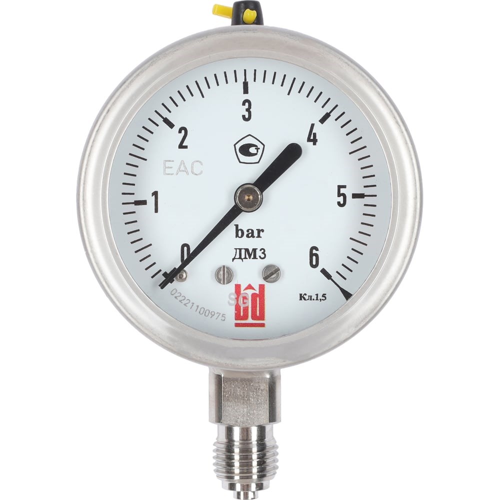 Манометр общетехнический с трубчатой пружиной. Тип ДМ (МОДИФИКАЦИЯ 3)Манометр применяется для измерений давления газообразных и жидких, не сильно вязких и не кристаллизирующихся сред, не агрессивных по отношению к нерж. стали (аммиак, щелочные и солевые растворы и др).Используются в том числе в местах с повышенной вибрацией и пульсацией в пищевой, пивоваренной и фармацевтической промышленности, в криогенной технике, химической и нефтехимической индустрии, в ядерных и холодильных установках, в насосах, прессах, компрессорах, турбинах, дизельных двигателях и т.п. Рекомендуется для применения с разделителями сред: РМ5319, РМ5320, DA, DB, DE, DF, DH, DJ и др.
