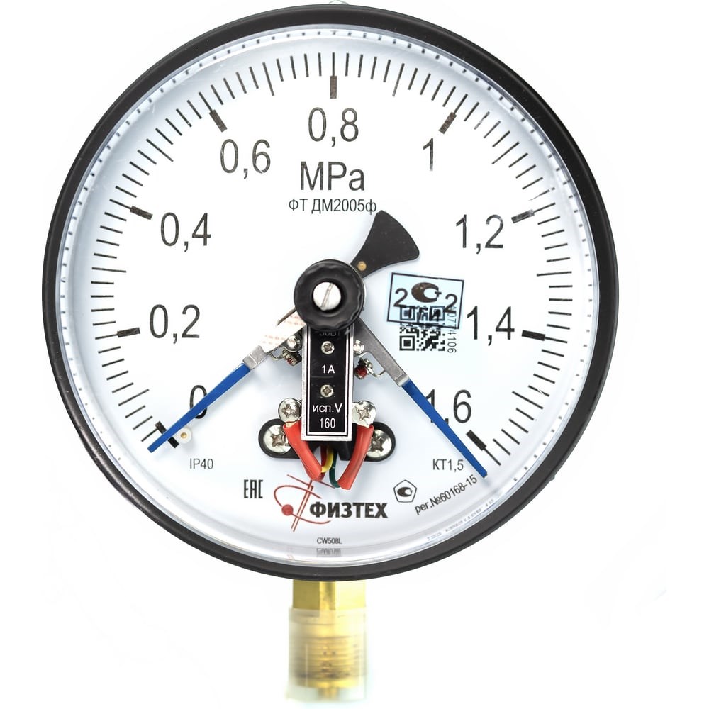 Манометры электроконтактные сигнализирующие ДМ2005ф предназначены для измерения избыточного давления некристаллизующихся,неагрессивных по отношению к медным сплавам сред. Посредством сигнализирующего устройства прямого действия могут управлять внешними электрическими цепями путем их замыкания и размыкания при достижении заданного предела давления. Обеспечивают визуальную индикацию контролируемого давления в процессе.Максимальное напряжение коммутируемого тока:220В постоянного тока;380В переменного тока.Сила тока, не более:1А для контактов с магнитным поджатием.Максимальная разрывная мощность контактовС магнитным поджатием:30Вт постоянного тока;50ВА переменного тока.Для скользящих контактов:10Вт постоянного тока;20ВА переменного тока.Пределы допускаемой погрешности срабатывания электроконтактной схемы, % от диапазона показанийдля контактов с магнитным поджатием +/- 4%.