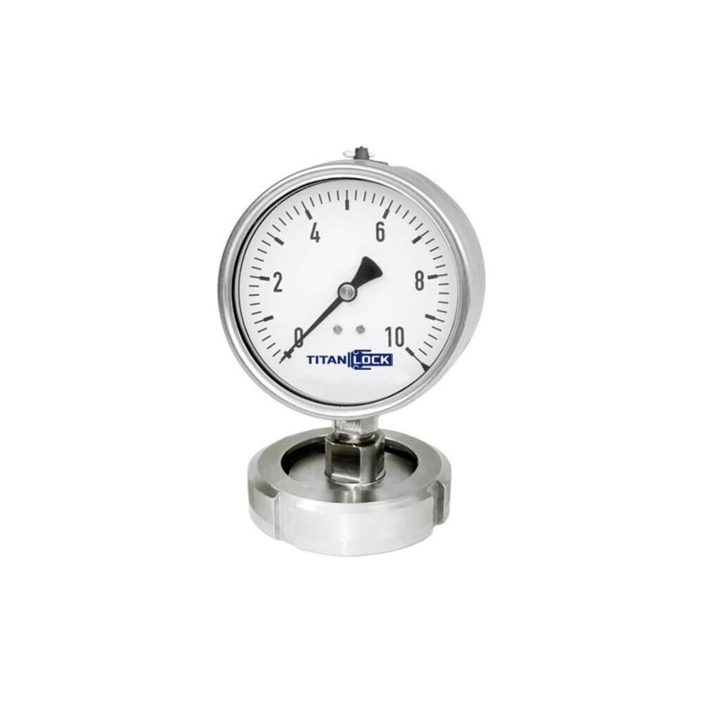 Манометр с мембранным разделителем используется для контроля за давлением в системе, где присутствует агрессивная или загрязненная среда. Он состоит из нержавеющего корпуса, измерительной шкалы и нержавеющей мембраны, разделяющей рабочую среду и чувствительный элемент манометра. Материал изготовления - нержавеющая сталь 304. Имеет тип присоединения под молочную гайку.