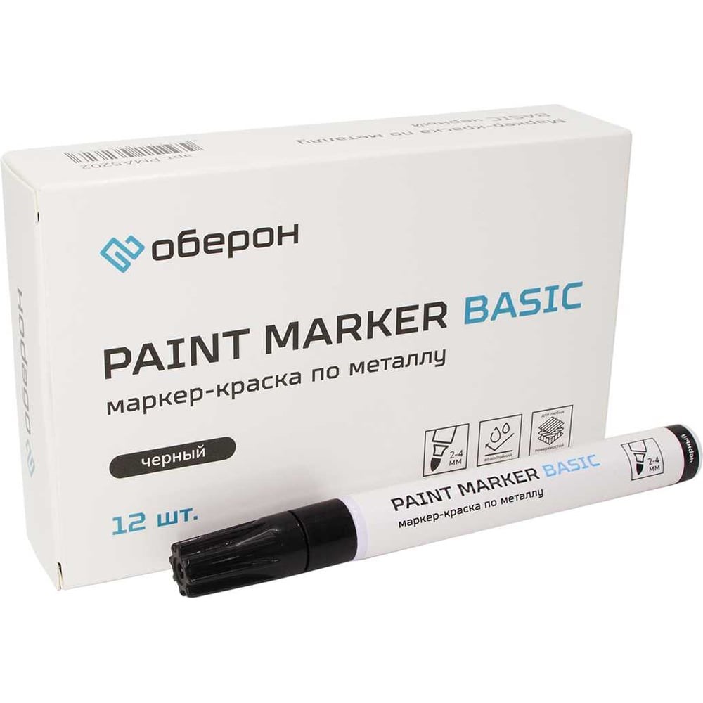 Маркер-краска Оберон PMA-520 черный PMA5202.12 используется для нанесения маркировки по нержавейке, алюминию, светлому бетону и другим светлым поверхностям. Красит даже по ржавому и замасленному металлу. В составе чернил - нитрокраска. Маркер позволяет маркировать свинцовые чушки, алюминиевые изделия, стекла и зеркала. Также изделие можно использовать в закрашивании небольших царапин на деталях машины. Толщина линии 2-4 мм.