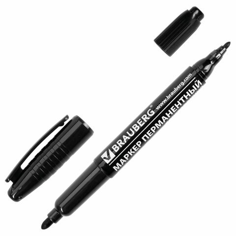 Маркер перманентный двусторонний BRAUBERG, ЧЕРНЫЙ, круглый наконечник, 2/4 мм, 150836