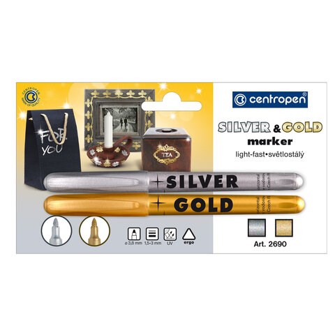 Маркеры для декорирования 2 ЦВЕТА CENTROPEN, СЕРЕБРЯНЫЙ/ЗОЛОТОЙ, круглые, 1,5-3 мм, 626900201