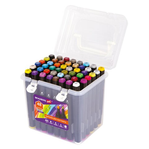 Маркеры для скетчинга двусторонние BRAUBERG ART DEBUT "BLACK", НАБОР 48 шт., пластиковый кейс, 152130