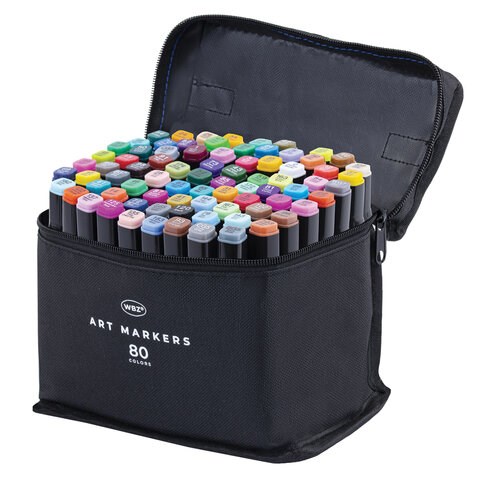 Маркеры для скетчинга двусторонние, НАБОР 80 шт, текстильный чехол, WBZ (ВБЗ), 152575