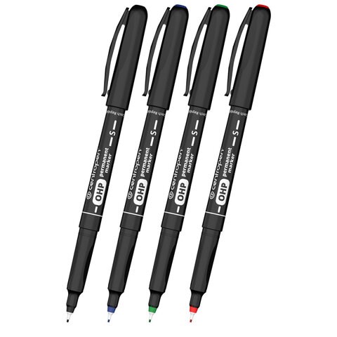 Маркеры перманентные для любой гладкой поверхности, НАБОР 4 шт., 4 ЦВЕТА, CENTROPEN "OHP", 0,3 мм, 2634/4, 626340401